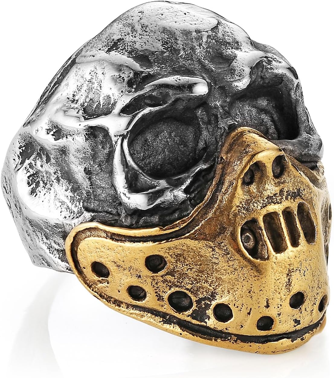 HZMAN Skull Ring for Men Chunky Stainless Steel Gothic Ring Jason Mask Ring Halloween Jewelry Gift
