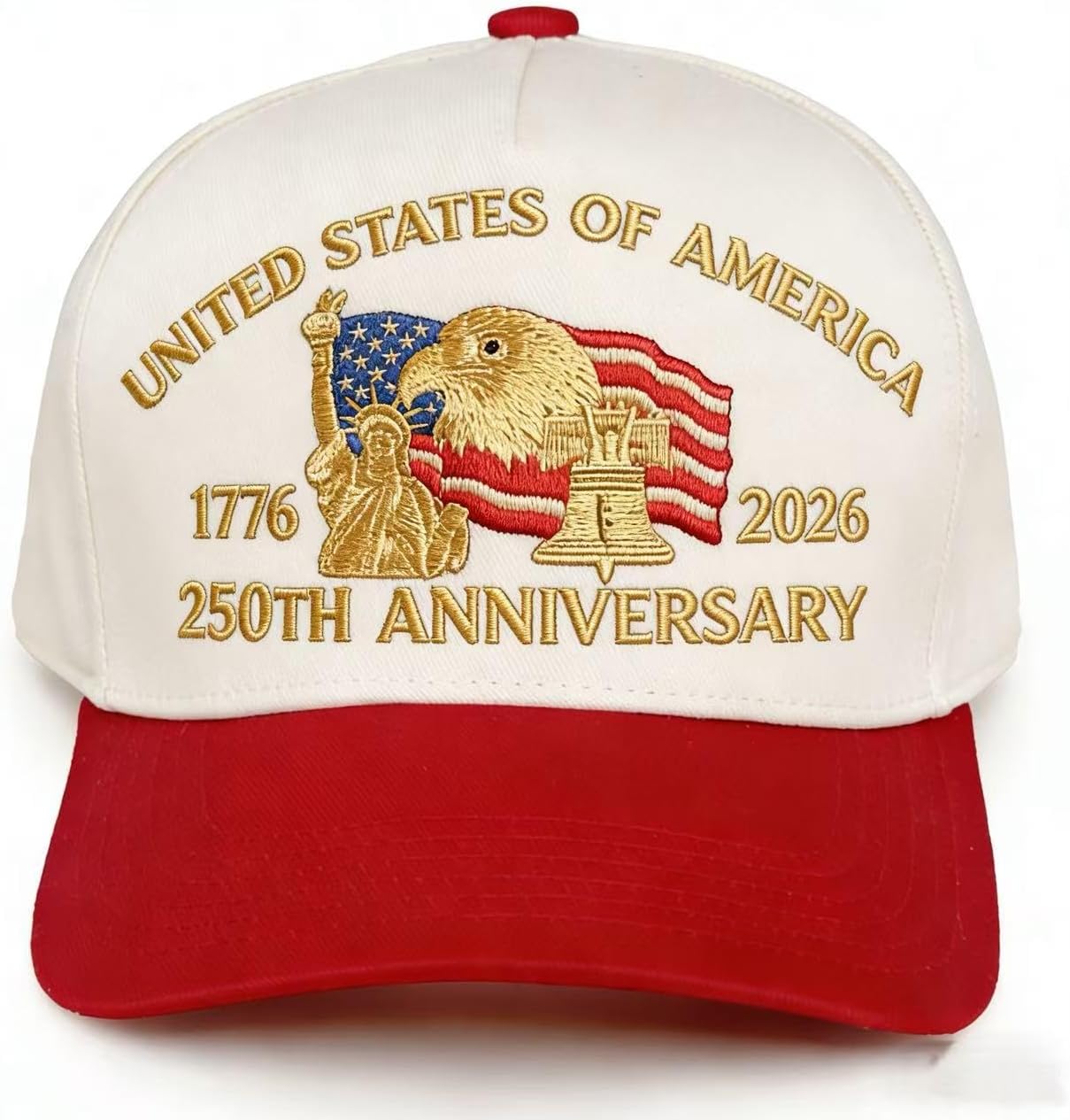 Embroidered United States 250th Anniversary Hat - 250 Years USA Trucker Hat for Men Women, Patriotic 2 Tone Baseball Cap
