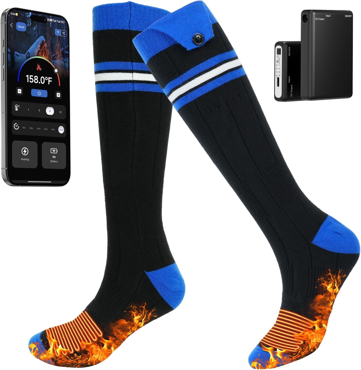 - 【Intelligent APP Control】Heated Socks for Men Women We've upgrade our heated socks app with new features like timed temperature control and multi-level adjustments, —adjust temperature settings, activate quick heat, and set timers. heated socks rechargeable for outdoor activities like hiking, hunting, camping, and skiing in chilly conditions.