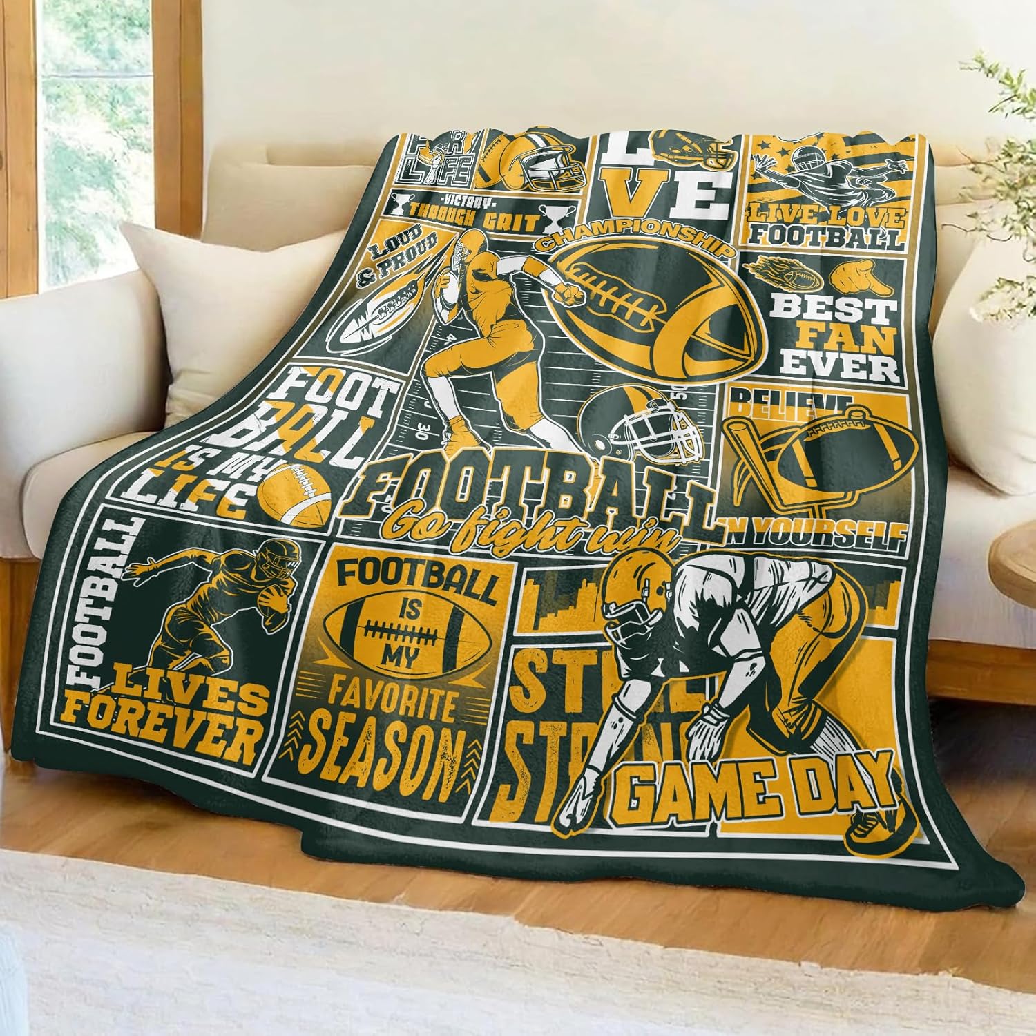 Football Throw Blanket, Football Gift for Men and Women, Team Color Sports Gear for Fans, Cozy Blanket for Couch Bed 60" x 50"