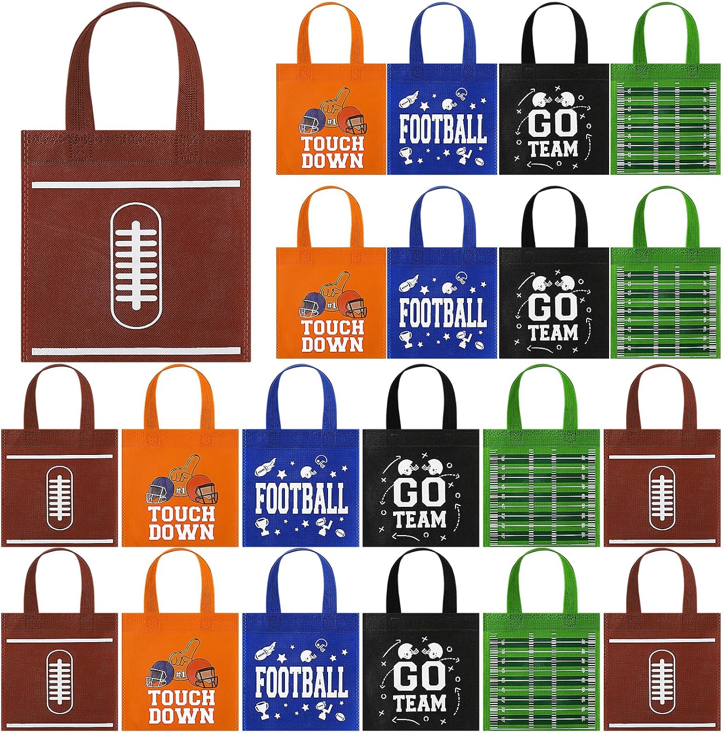 - Versatile Party Essential: the colorful 8 inch x 8 inch non woven football gift bags are nice for any occasion; With 25 bags in 5 novel designs, they're an ideal fit for everyday use and special events like themed football parties; Their versatility makes them a great choice for birthdays, anniversaries, and more, adjusting seamlessly to your party needs