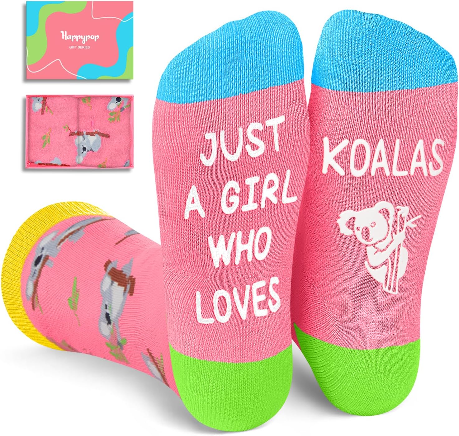 HAPPYPOP Funny Socks for Women - Squirrel Panda Monkey Gifts, Koala Raccoon Socks for Teens