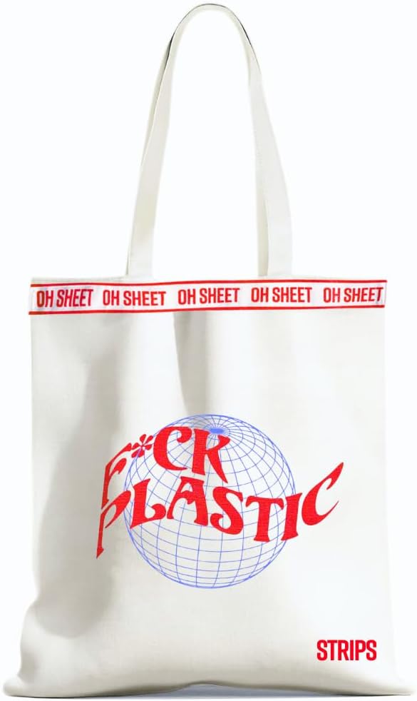STRIPS Oh Sheet Reusable Canvas Tote Bag 16x16 – Heavy Duty 55lbs Capacity – Premium 6oz Cotton – Eco-Friendly, Stylish, Durable – Shopping, Work, DIY, Gift Bag (1 Pack)