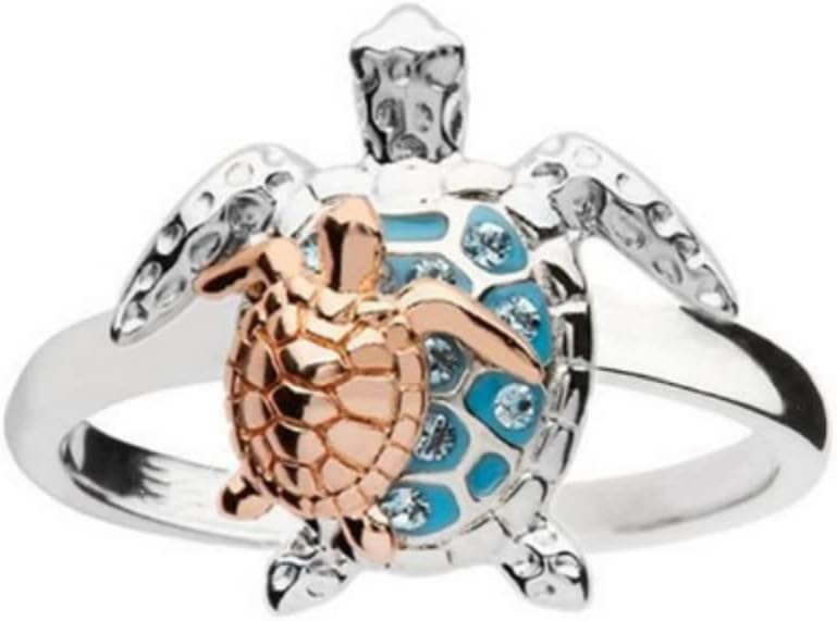 HUKQBUNX 925 Sterling Silver Blue Sea Turtle Ring lovely little turtle innovative design beach wave vacation wave ring women's precious jewelry size 6-10