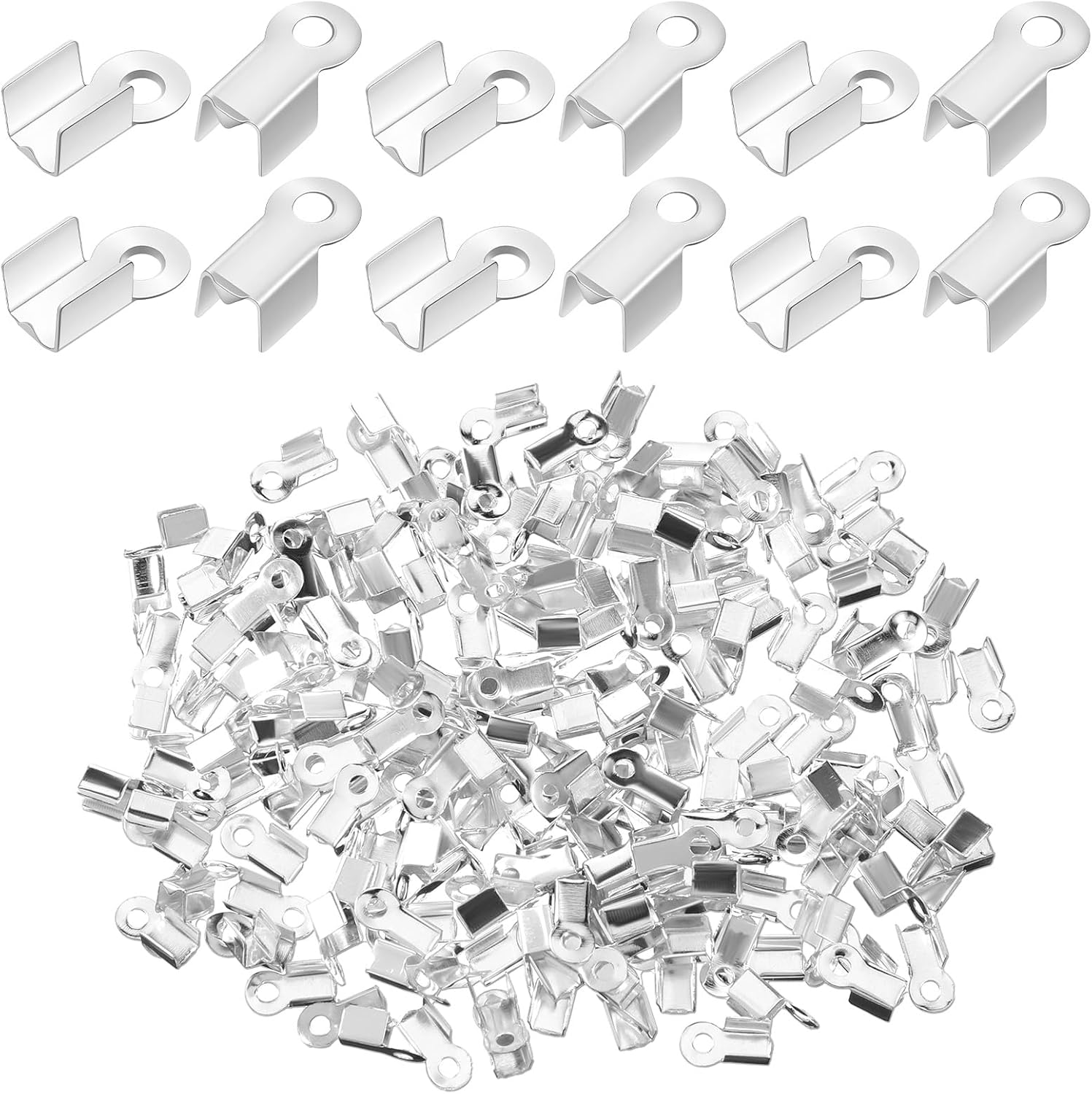 200 Pcs Fold Over Cord Ends, Cord Crimp Tips Fold-Over End Caps Leather Ribbon Clasp Tips Jewelry Connector for Jewelry Making, 4 x 9 mm