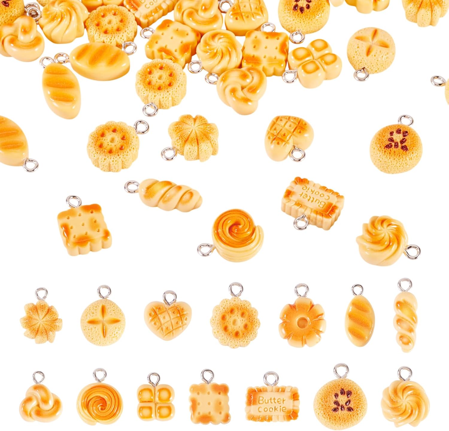 Beadthoven 42Pcs 14 Styles Simulation Bread Charms Mini Cookie Biscuit Resin Pendants Cute Heart Flower Shaped Bread Dangle Charms Tiny Dessert Food Pendants for Jewelry Making DIY Earrings Necklace