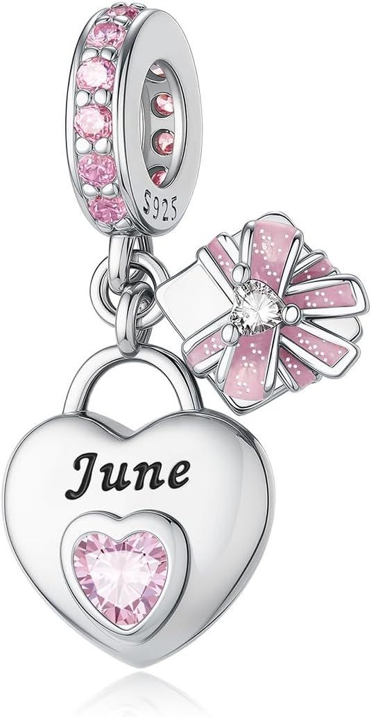 925 Sterling Silver Heart Birthstone Charms for Bracelets and Necklaces Happy Birthday Christmas Women&Mom Jewelry Gifts