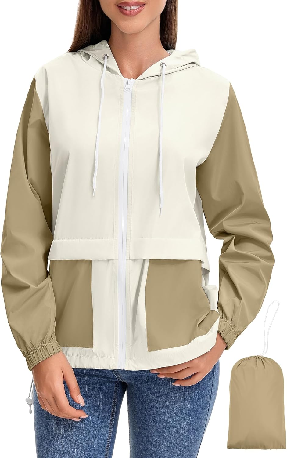 Zando Women's Lightweight Rain Jacket with Hood Waterproof Raincoat for Women Packable Windbreaker Jacket for Outdoor Travel
