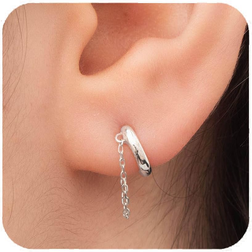 14K Gold Plated Chain Huggie Hoop Earrings, Small Dangle Chain Hoop Earrings for Women