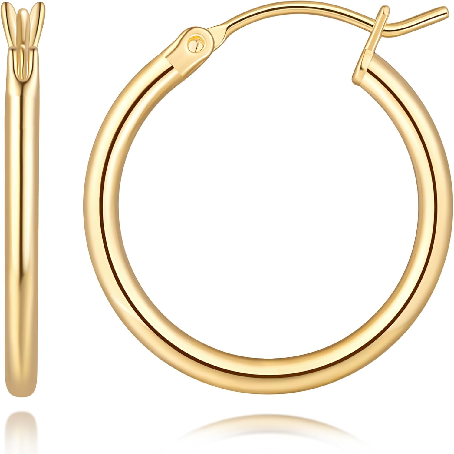 14K Gold Hoop Earrings for Women 14K Gold Earrings for Women Hoop Earring for Womens Shiny Smooth Hoops Earring for Womens Hoops 12/14/16/18/20/25/30/35/40/45/50/60/70mm