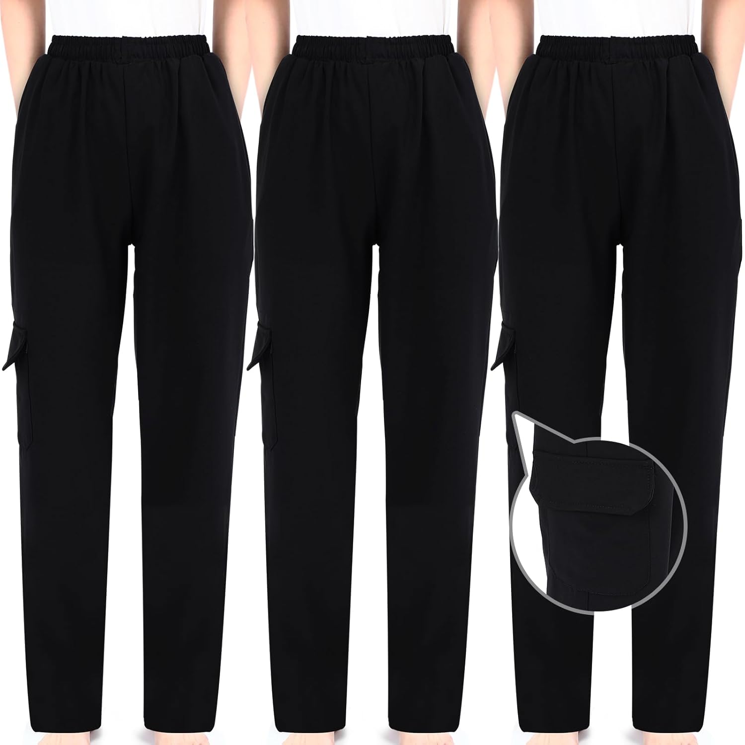 Blosssound Summer Men's Chef Pants Pack Classic 5 Pocket Chef Cargo Baggy Kitchen Pants with Elastic Waist