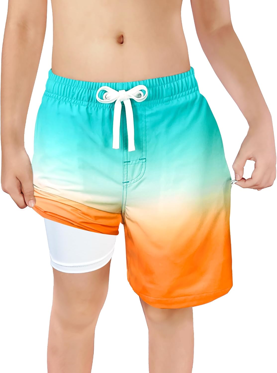 LUCOWEE Boys Swim Trunks Zipper Pockets Compression Liner Anti Chafe Swimsuit Bathing Beach Shorts Surf Quick Dry UPF 50+