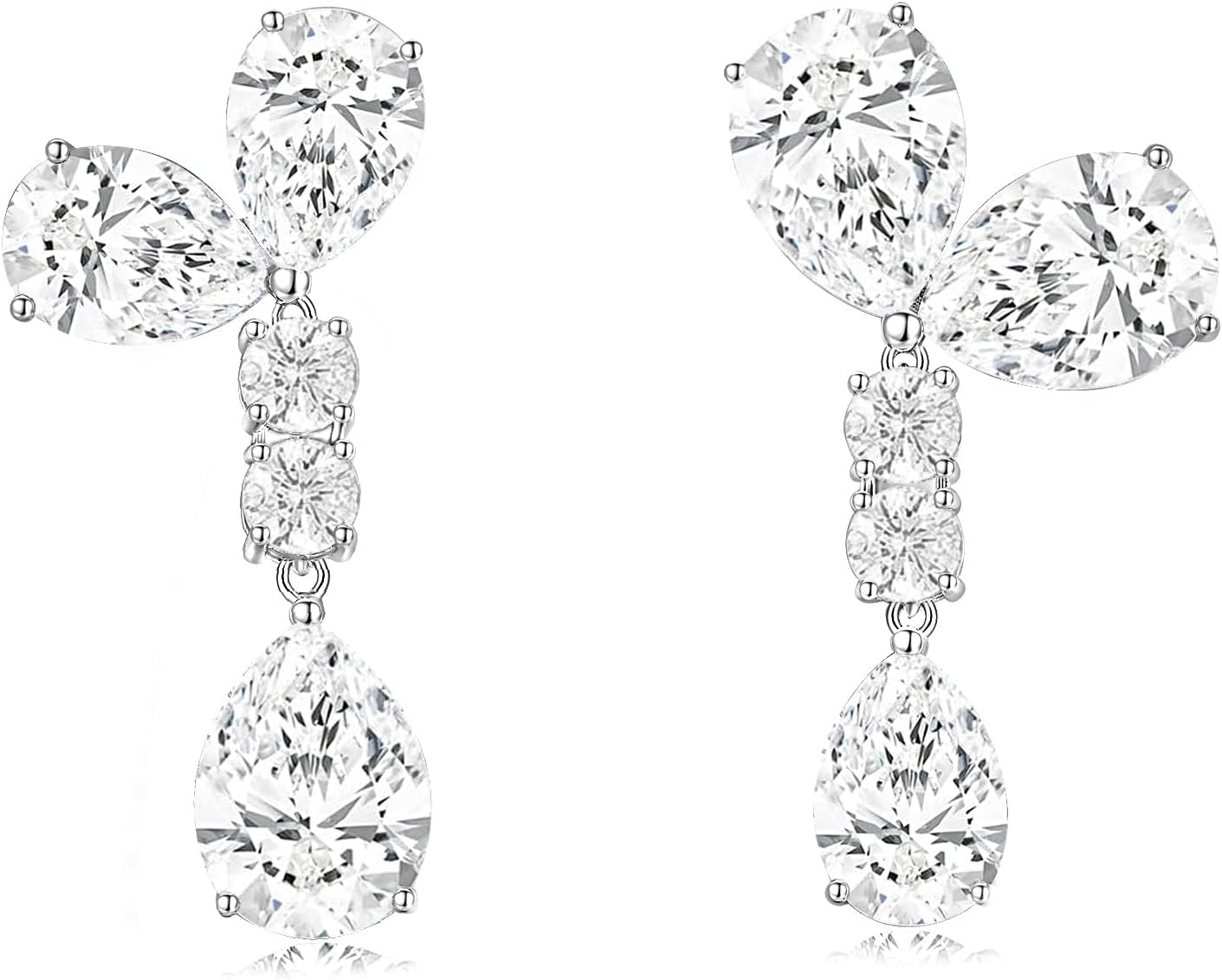 TIGRADE Wedding Earrings for Brides Bridesmaids- Love Heart Asymmetry Earrings Teardrop Dangle Earrings 925 Sterling Silver Post Drop Earrings for Prom, Pageant, Formal Party, Silver
