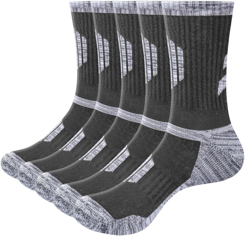YUEDGE Men's Hiking Socks Moisture Wicking Mens Sock Cushioned Casual Athletic Sock Comfort Work Socks for Men, 5 Pairs