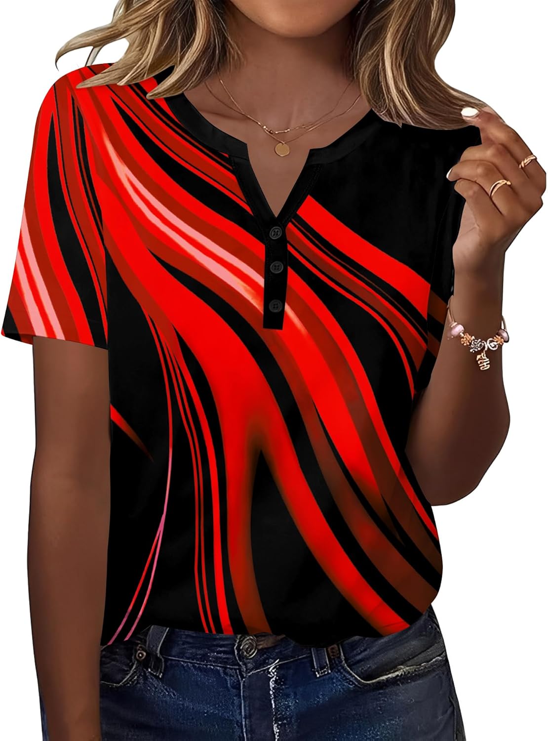 TCOT Women's Tops Dressy Casual Summer Blouses Short Sleeve Button V Neck Spring Tee Shirts