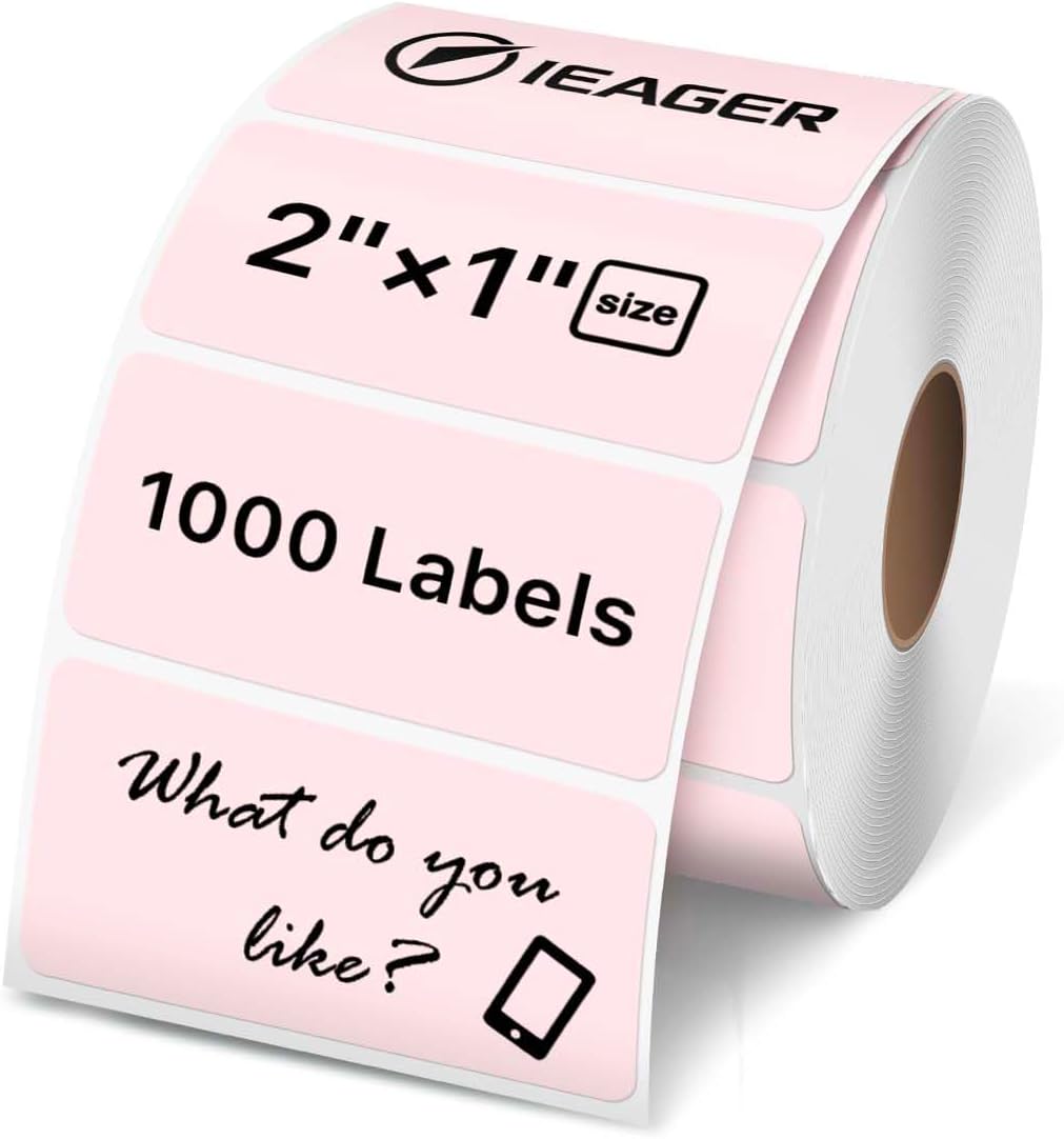 - Specifications: iEager 2" x 1" pink thermal label with perforation line, 1000 labels/roll. Paper tube inner diameter 1". No ink, toner or ribbons needed