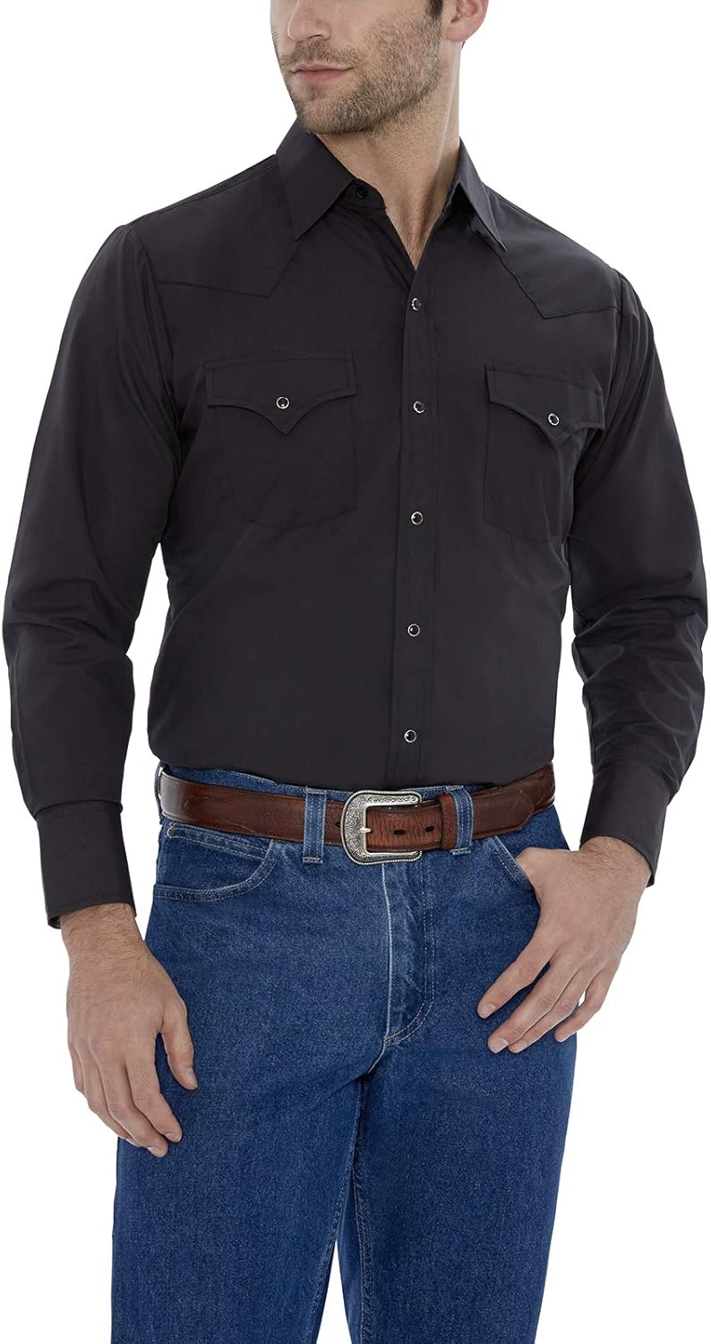 ELY CATTLEMAN mens Long Sleeve Solid Western Button Down Shirt, Black, XX-Large Tall US