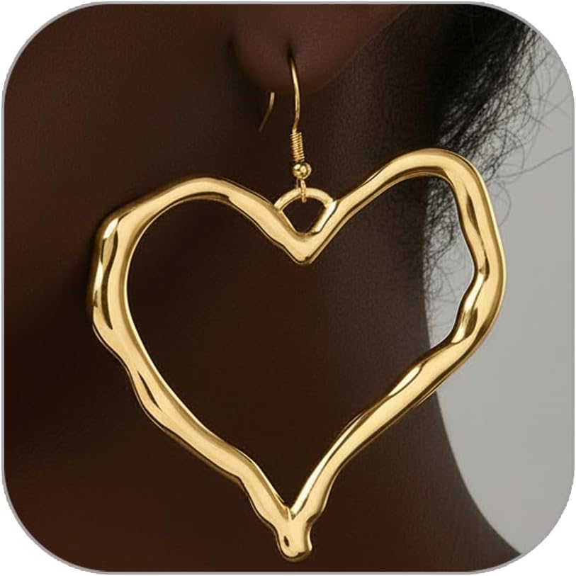 Gold Heart Earrings for Women Chunky Gold Silver Heart Earrings Hollow Metal Big Hearts Dangle Stud Earring Exaggerated Minimalist Valentine's Day Heart Earrings Valentines Day Jewelry Outfits Accessories