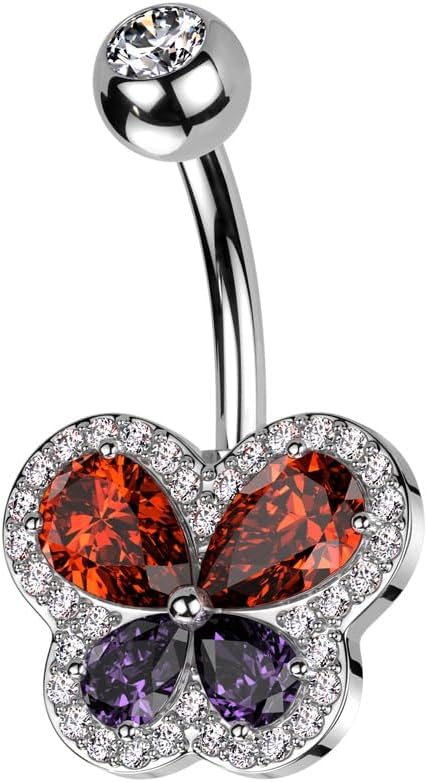 Pierced Owl 14GA 316L Stainless Steel Red and Purple CZ Crystal Butterfly Belly Button Ring