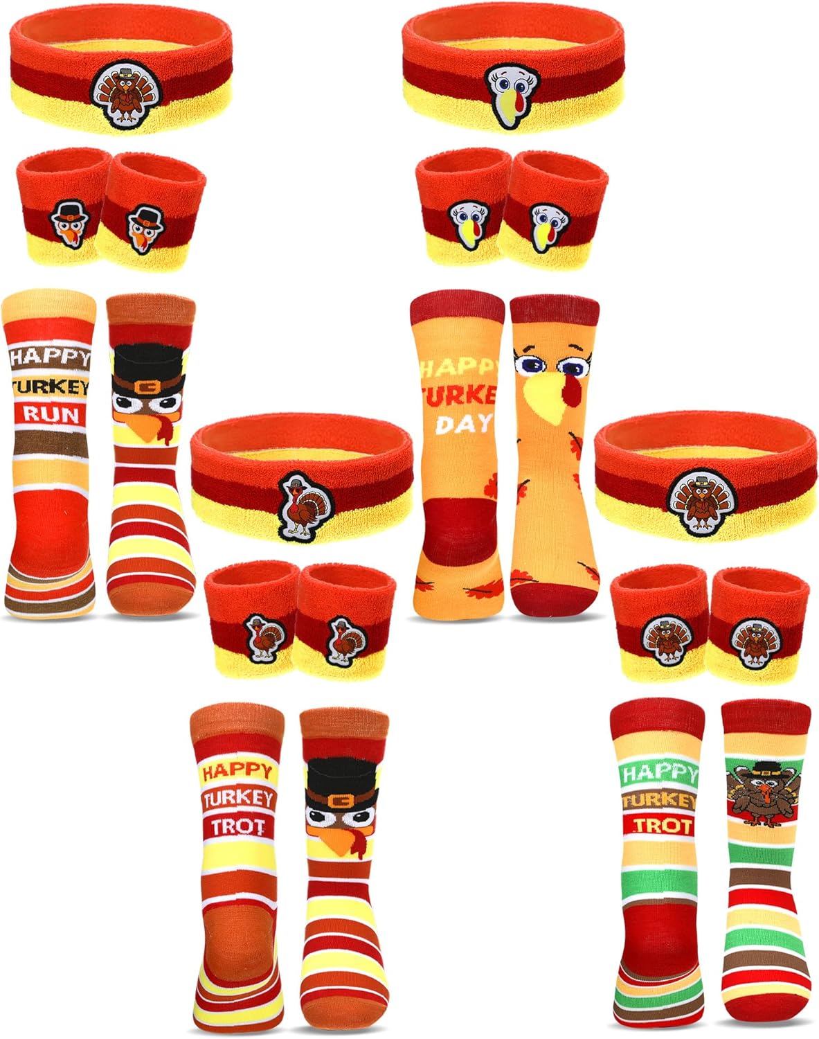 12 Pcs Thanksgiving Turkey Trot Sock Set for Women Knee High Running Long Striped Turkey Race Gear Sock Headband Wristband Thanksgiving Party Accessories for Men Women Gifts Holiday Costume