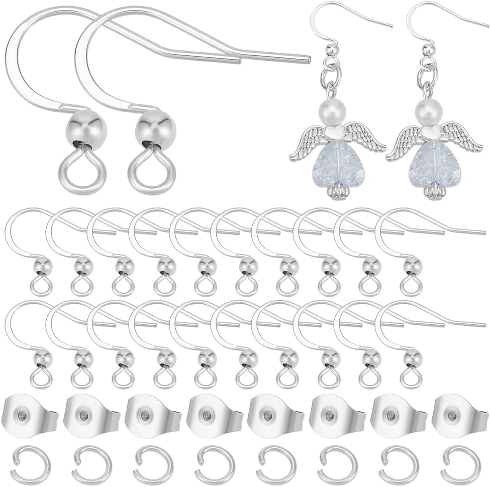 UNICRAFTALE 150Set Stainless Steel Earring Hooks Silver Ear Wire with Jump Rings and Earring Backs Fish Hooks Earrings Hook with Ball for DIY Earrings Jewelry Making