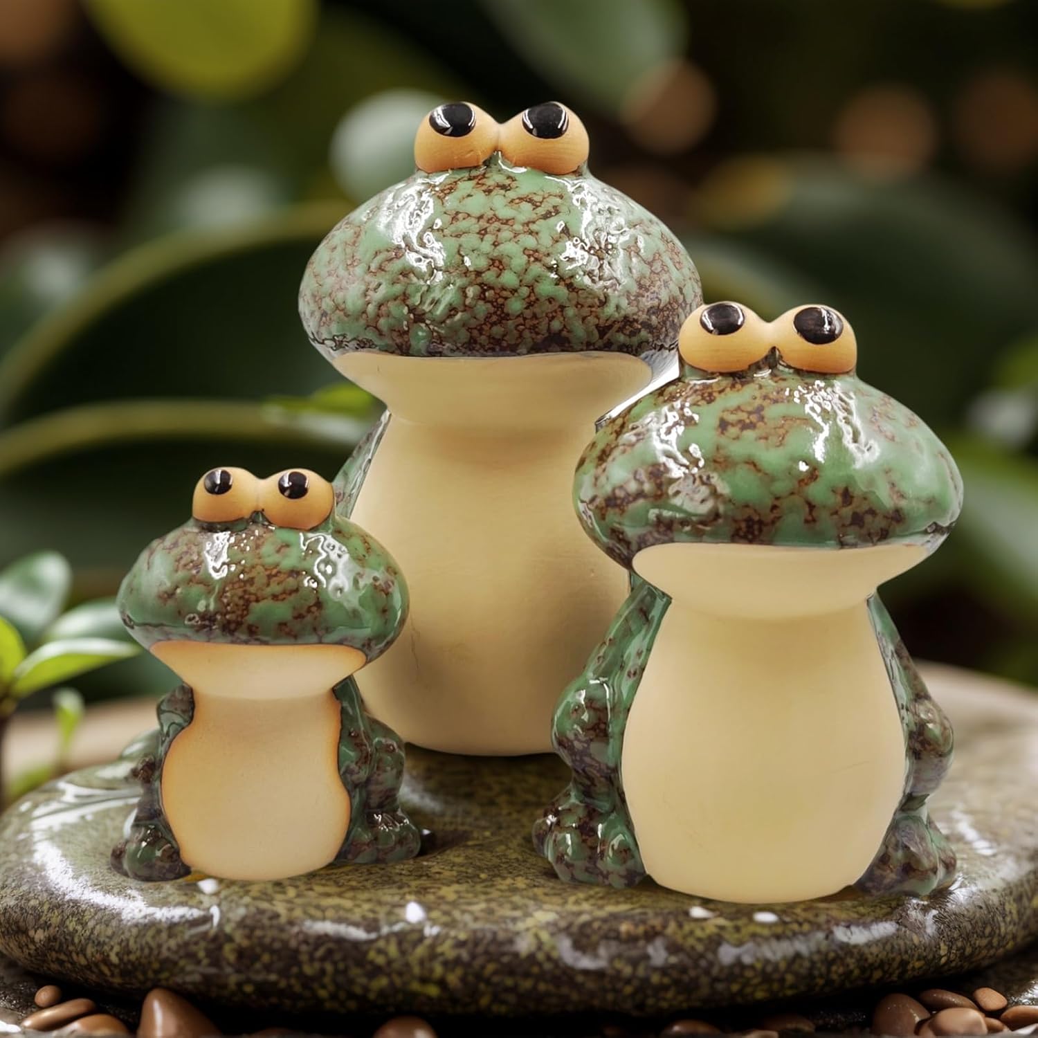 - 【Frog Family Set】Includes three adorable ceramic statues: Papa (6.3"H x 5.1"W x 3.7"D), Mama (5.5"H x 3.9"W x 2.8"D), and Baby (3.9"H x 3"W x 2.4"D). Perfect as whimsical garden decor or animal garden statues to add playful charm to your yard.