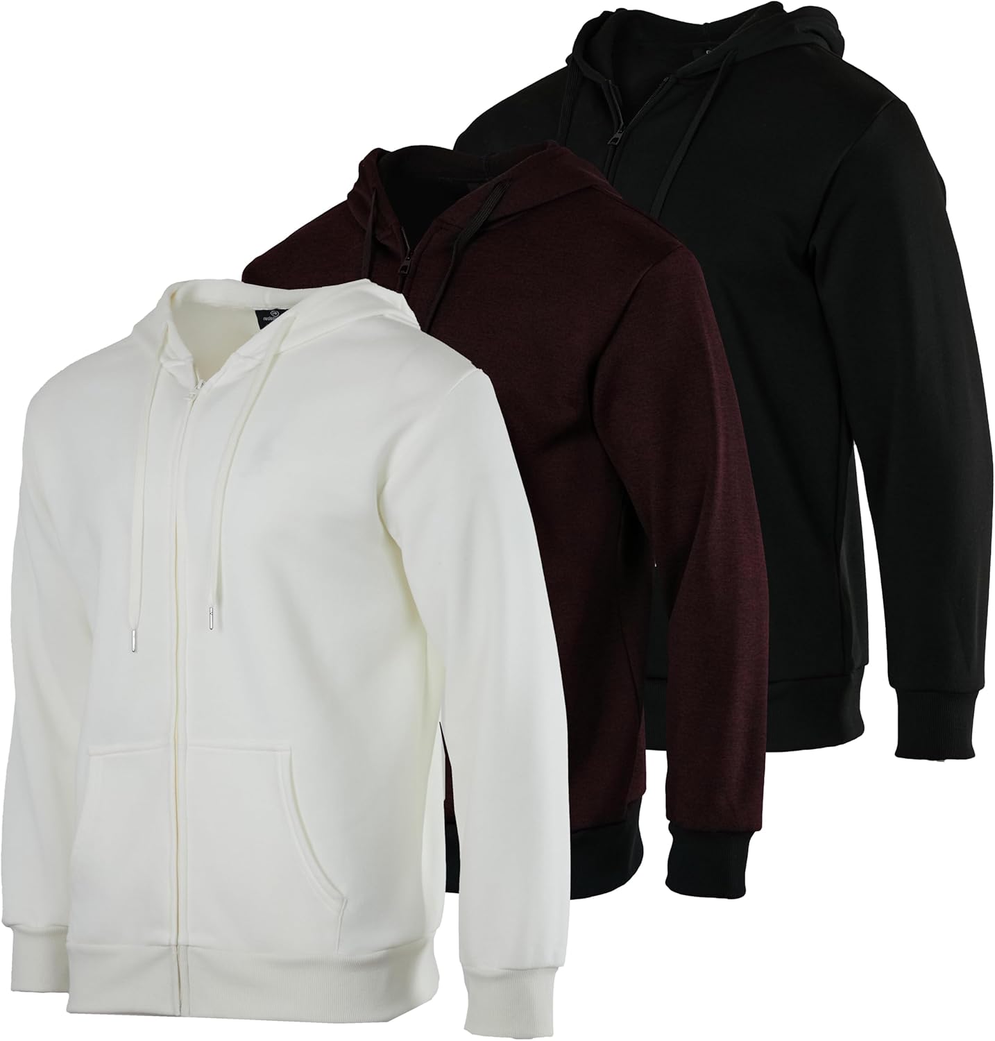 Real Essentials 3 Pack: Mens Fleece Long Sleeve Full Zip Hoodie - Athletic Sweatshirt Jacket (Available in Big & Tall)