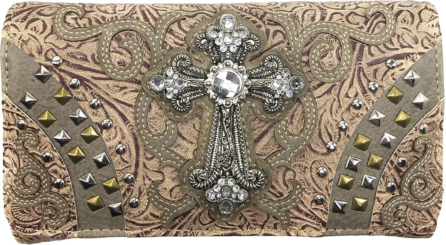 Justin West Clydesdale Tooled Leather Metal Stud Cross Conceal Carry Women Handbag Purse