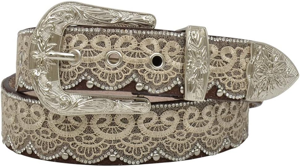 Angel Ranch Western Belt Womens Lace Bead Overlay Croc Brown DA3650