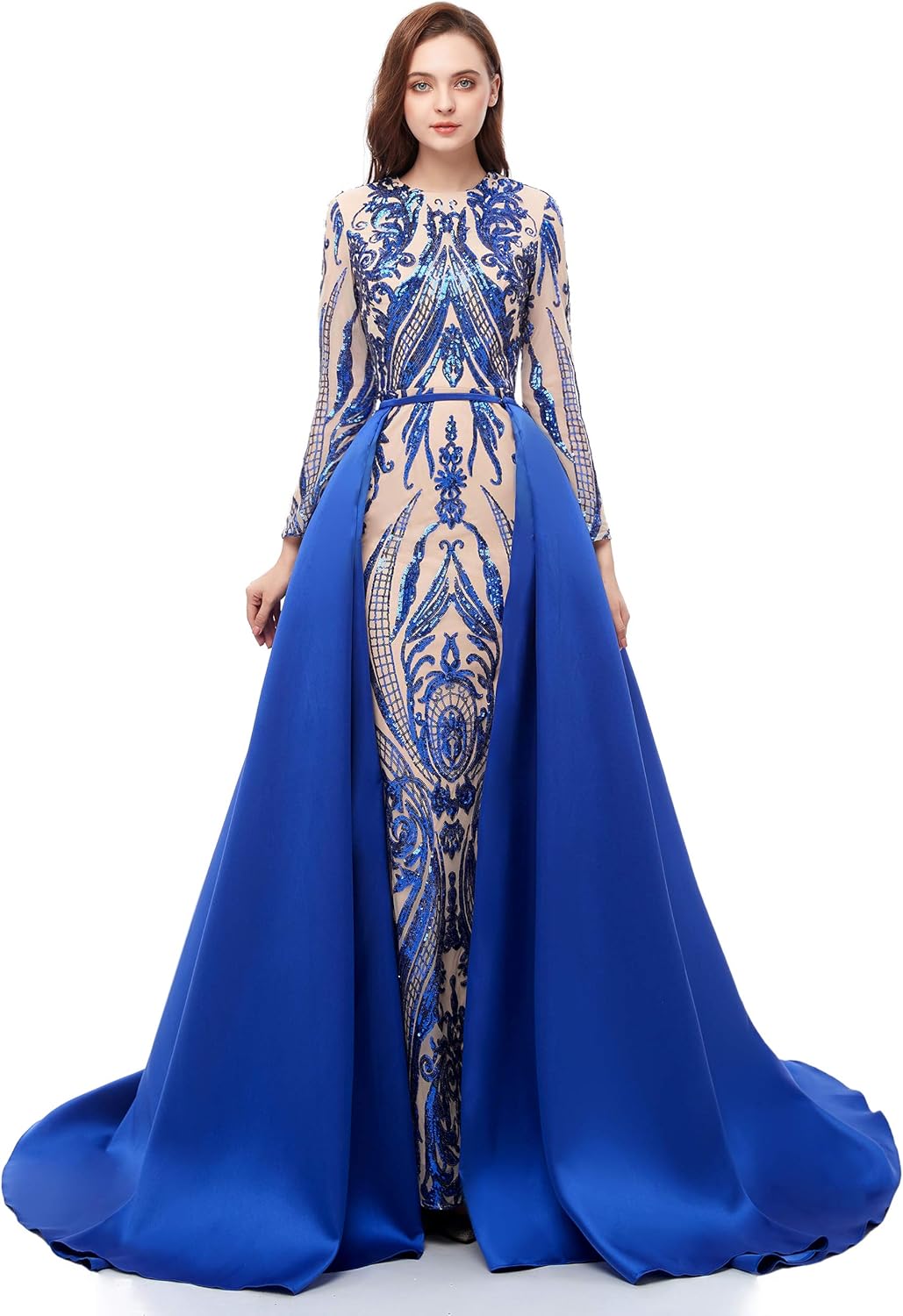 Long Sleeves Prom Dress Glitter Sequin Detachable Pageant Mermaid Gala Evening Party Gown
