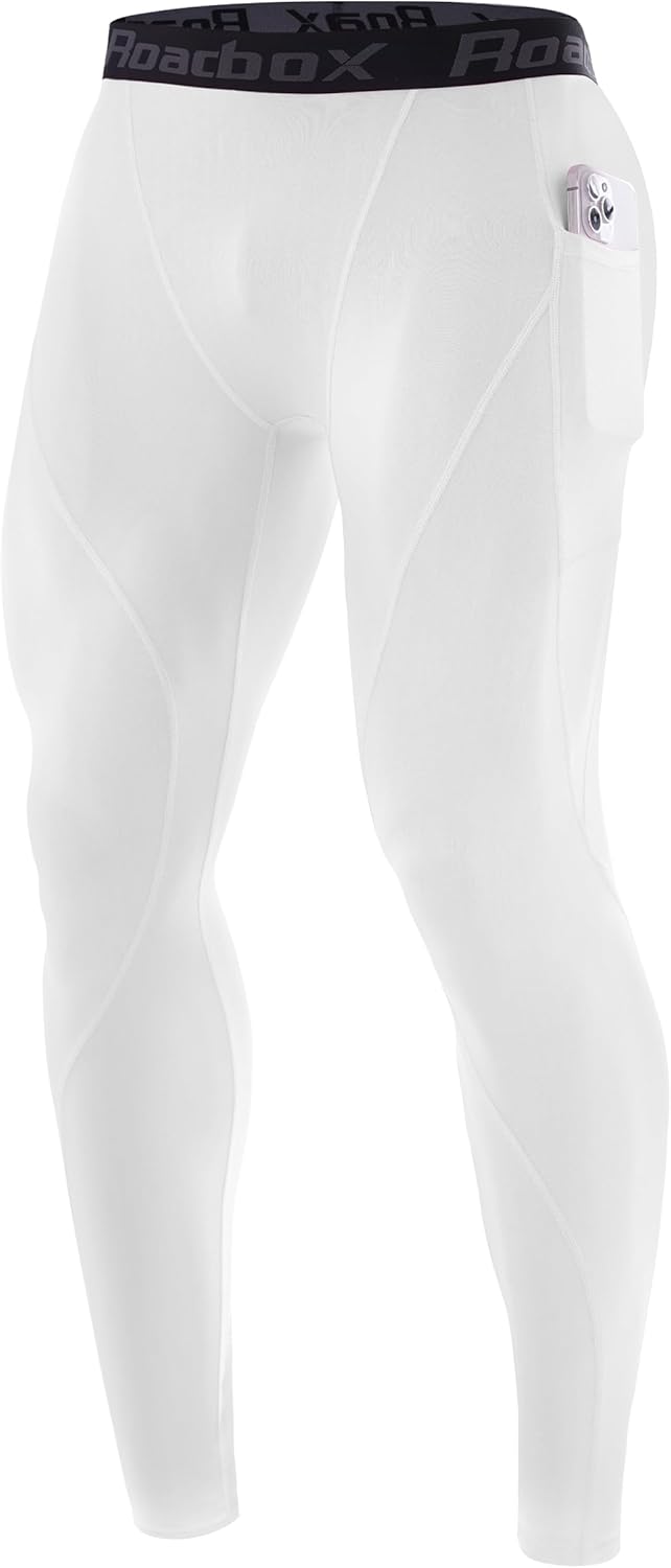 Roadbox Mens Compression Pants Running Tights with Pockets Sports Workout Leggings Athletic Base Layer for Cycling Basketball