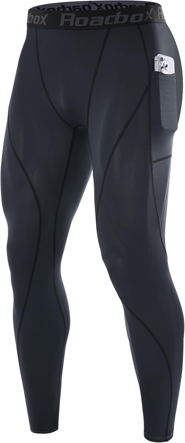 Roadbox Mens Compression Pants Running Tights with Pockets Sports Workout Leggings Athletic Base Layer for Cycling Basketball