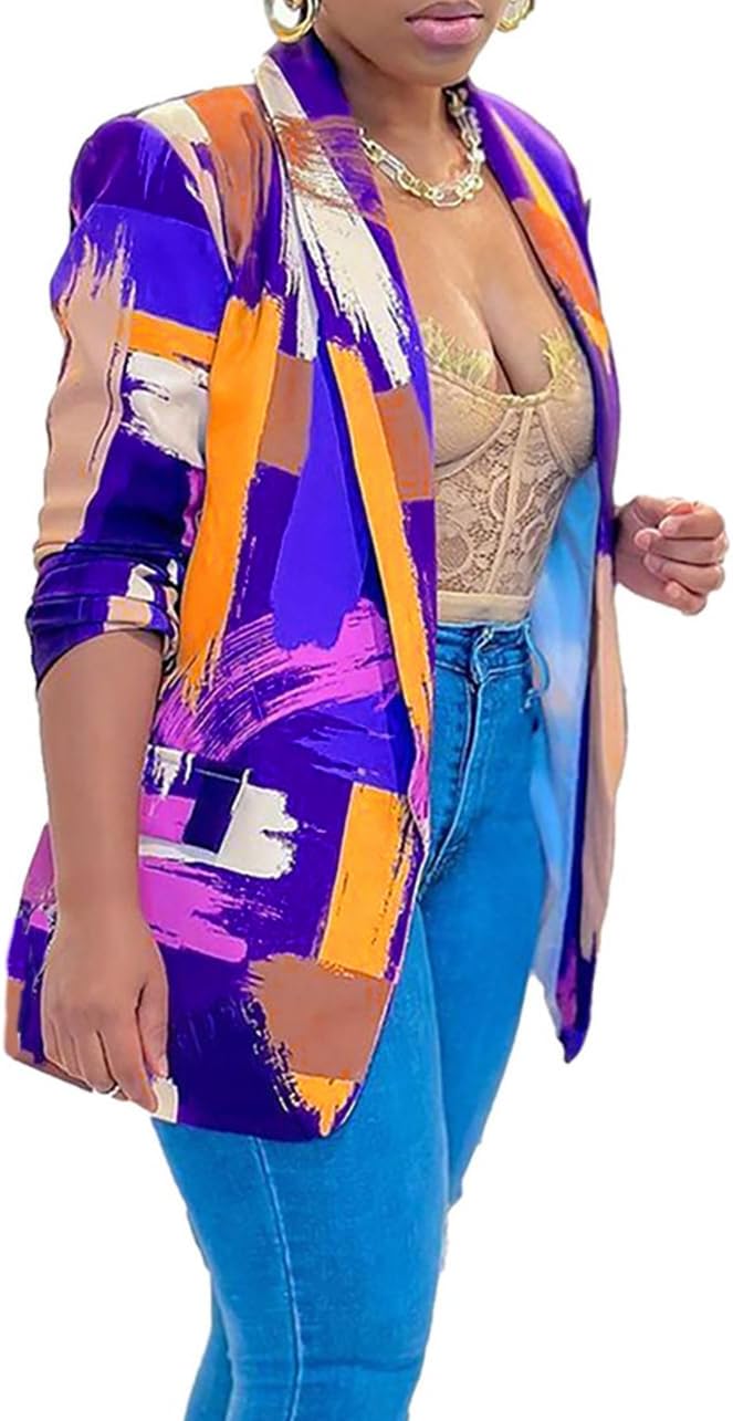 Plus Size Blazers for Curvy Women Sexy Trendy Colorful Oversize Graphic Open Front Jackets