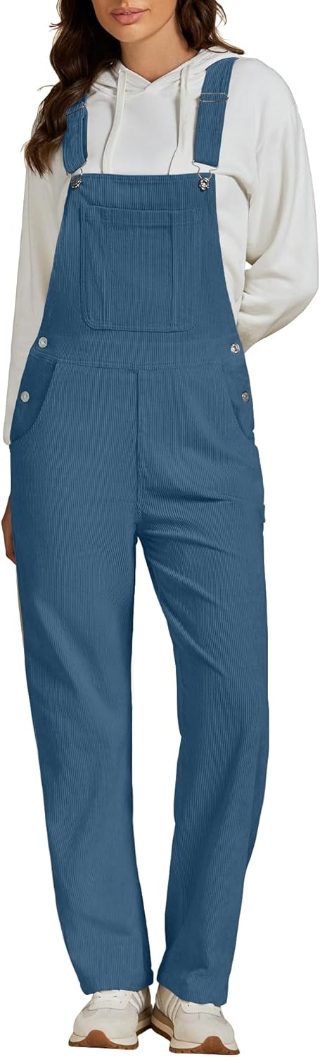 luvamia Corduroy Overalls for Women Bib Straight Leg Baggy Carpenter Adjustable Strap Fall Jumpsuit Overalls with Pocket