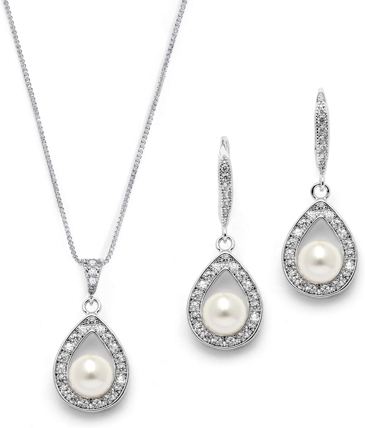 Mariell Pearl Necklace and Drop Earrings Wedding Jewelry Set for Brides, Bridesmaids, Birthday Gift