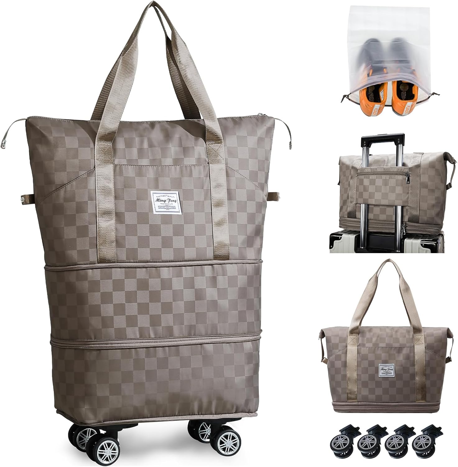 Rolling Duffle Bag with Wheels Expandable Foldable Travel Duffel Bag Checkerboard Carry on Luggage Bag Weekender Bag for Men Women