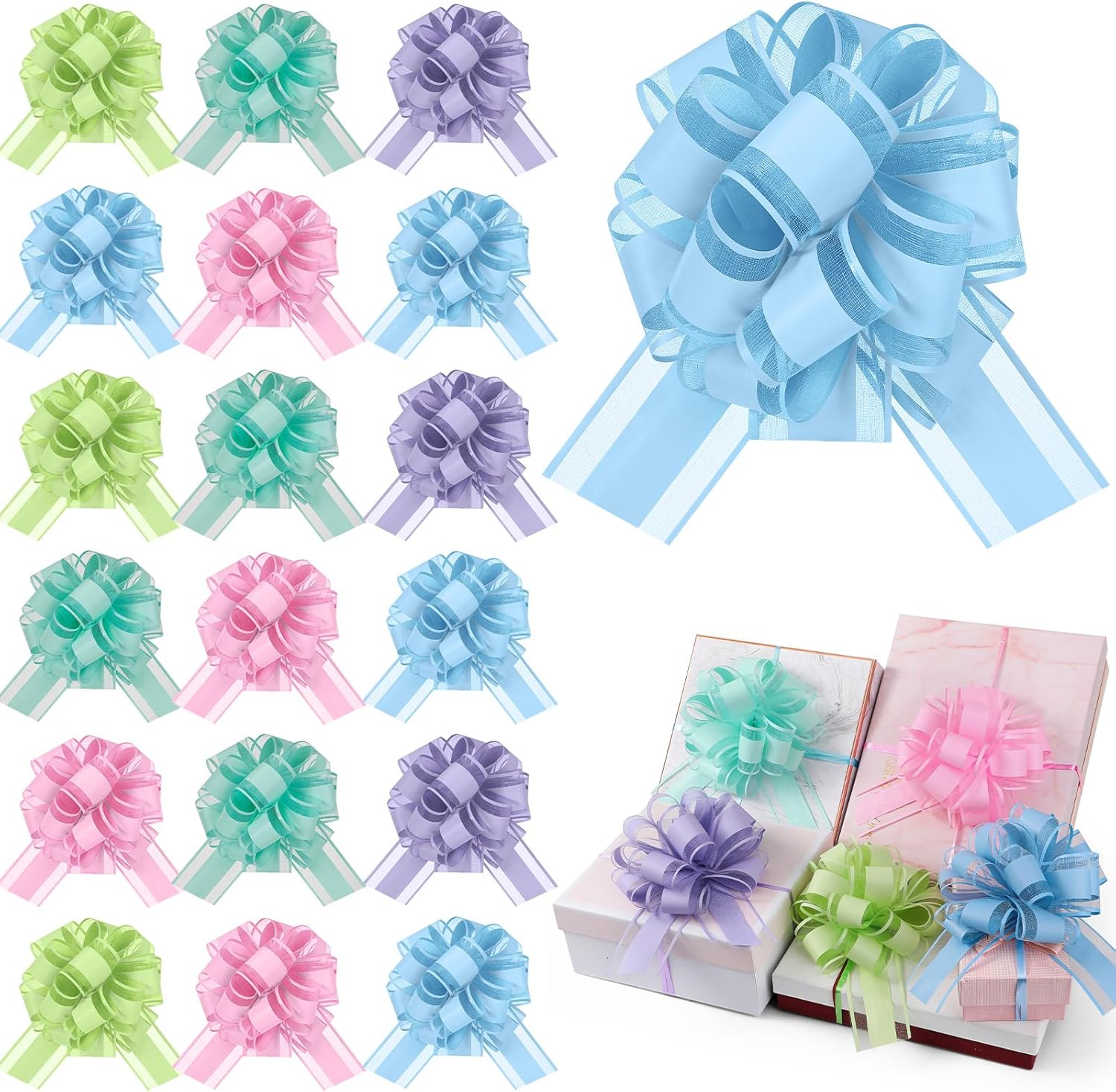 - Size: pull bow is made from organza, not easy to tear and ideal for many occasions, each measures 15 cm/ 6 inches in diameter when pulled, and the ribbon is 2 inches in width, adorable appearance with proper size is suitable for wrapping gifts