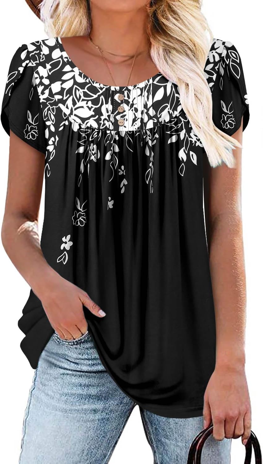 BETTE BOUTIK Women's Summer Tunic Tops Flowy Flare Botton Down Shirts Blouses S-3XL