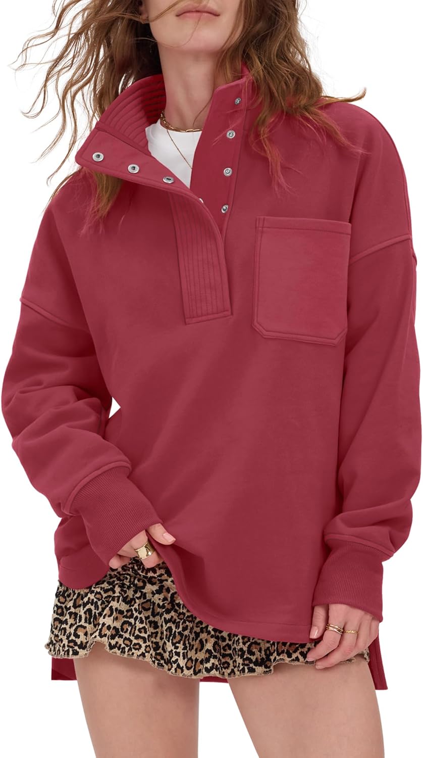 Locachy Womens Casual Oversized Sweatshirt Long Sleeve Button Henley Neck Pullover Tops Fashion Outfits Clothes