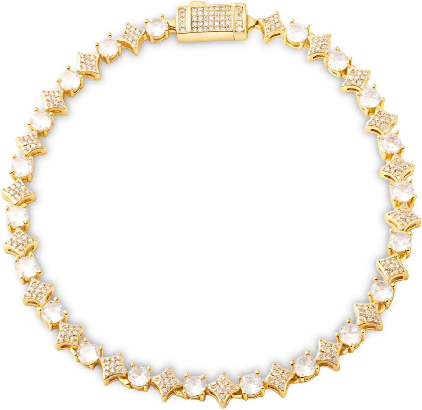 Star Tennis Bracelet for Men Women - 6mm Sparkling Iced Out 18K Gold Plated 5A+ Black/Cubic Zirconia Jewelry - Created Diamond Party Gifts 7.1"-9.1"