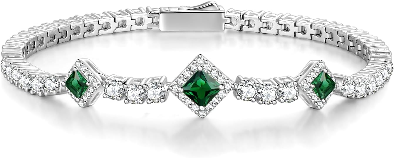 FANCIME Birthstone Bracelets 4mm Sterling Silver Tennis Bracelets Square Gemstone Birthday Fine Christmas Jewelry Gifts for Women 7.2"