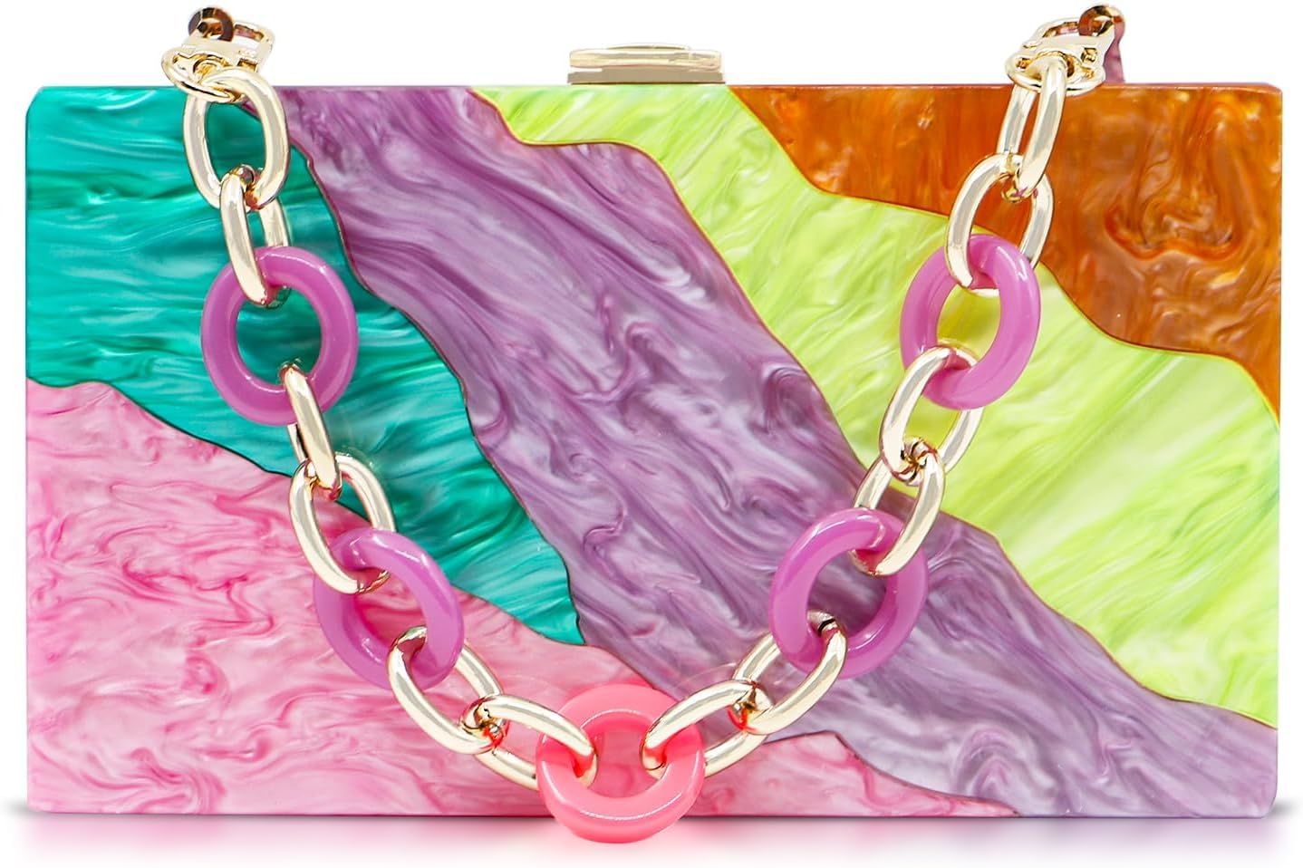 Acrylic Evening Bag, Clutch Purses for Women, Colorful Geometry Motifs Crossbody Bag for Wedding Party(Style 1)