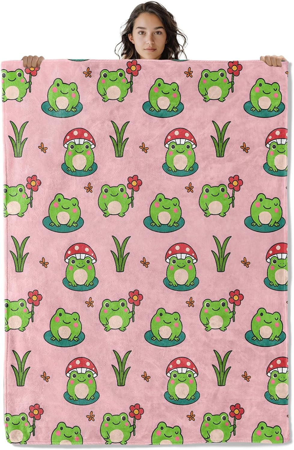 Cute Frog Blanket, 60 x 50 Inch Flannel Adorable Cartoon Frogs Animal Throw Blanket, Gifts for Women Girls Boys Adults Kids, Lightweight Cozy Warm Blankets for Sofa Travel Home Decor