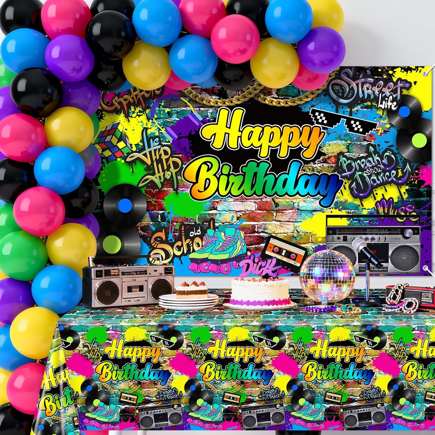 80s Party Decorations 80s 90s Theme Birthday Party Decorations Hip Hop Retro Birthday Banner Tablecloth Balloons Back to The 1980s Party Supplies