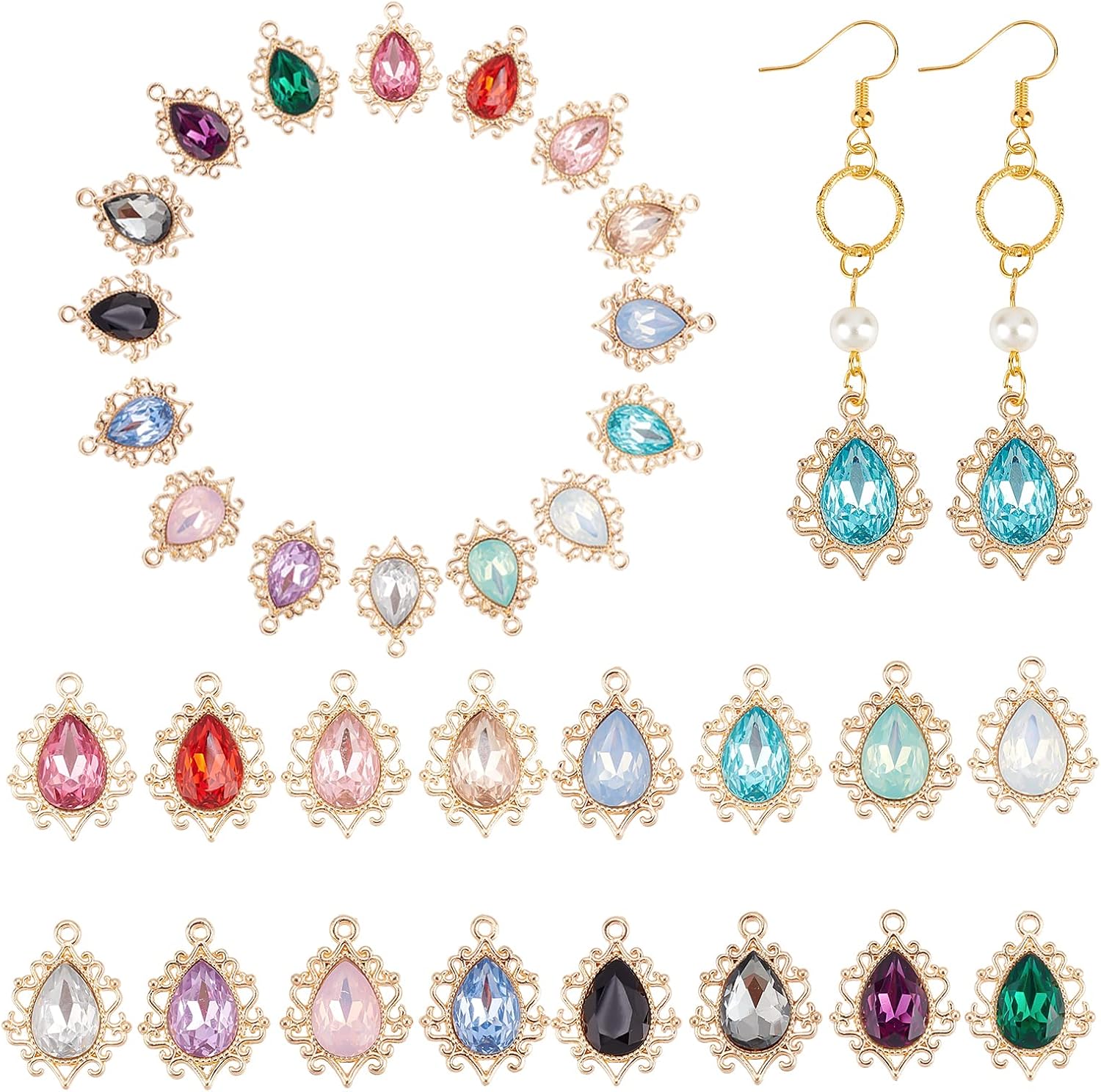 PH PandaHall 32pcs 19x25mm Teardrop Charms 16 Colors Faceted Teardrop Beads Golden Dangle Rhinestone Beads Charms Pendants for Jewelry Bracelet Necklace Earring Pendant DIY Craft Making