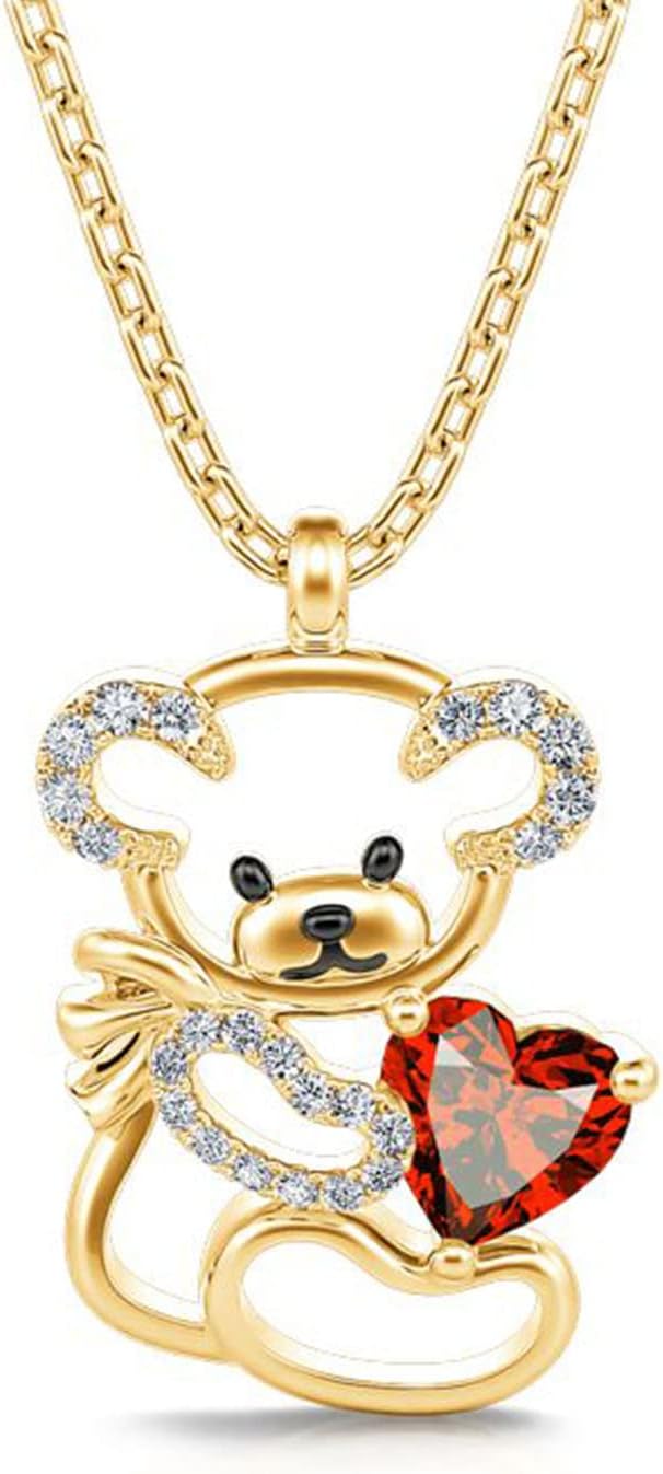 Jeulia Necklace Sterling Silver for Women Teddy Bear Crystal Pendant Heart Diamond Simulated Animal Jewelry Engagement Wedding Anniversary or Birthday Valentine with Gift Box