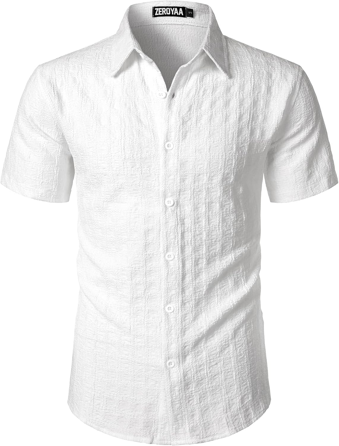 ZEROYAA Men's Knit Shirt Vintage Slim Fit Short Sleeve Button Down Shirts Summer Vacation Beach Tops