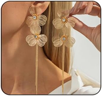 Boho Gold Flower Drop Dangle Earrings for Women Rhinestone Floral Leaf Chandelier Earring Layered Long Tassel Statement Floral Earring Prom Brides Wedding Party Fashion Jewelry Accessary