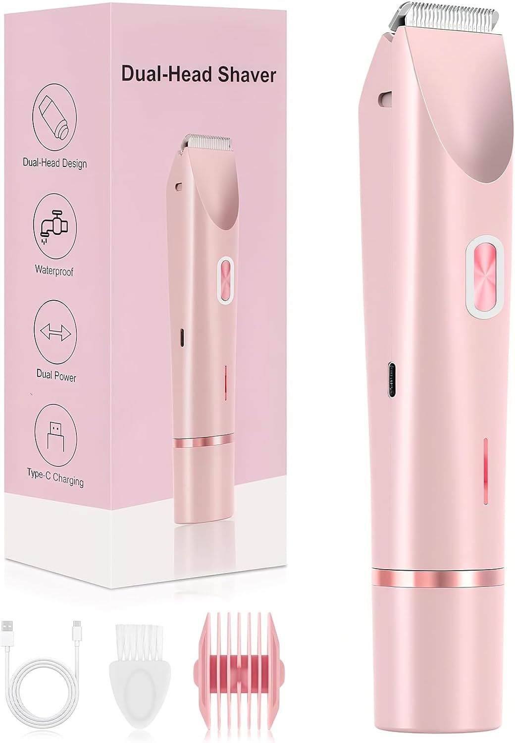 - ✨【Long-Lasting & Travel-Ready】Our dual head shaver women can use 120 mins runtime on a single charge. Compact & lightweight, this shaver fits in your purse or travel bag—perfect for vacations, gym, or daily touch-ups. Tip: Charging method is USB-C quick charge