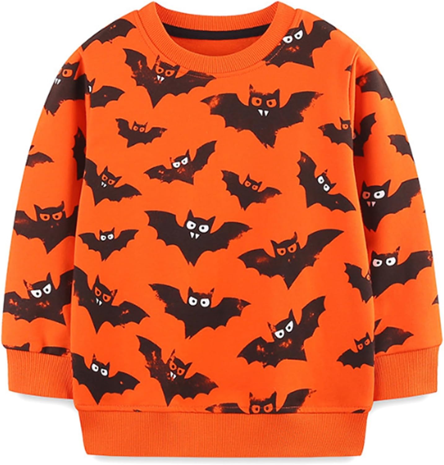 Boys Gilrs Sweatshirt Long Sleeve Halloween Cartoon Shirts Tops Orange for 18M-6T